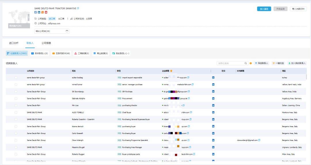 不用费时费力多渠道查找,EVO视讯官网外贸通集合关键决策人的职务、邮箱、领英、Facebook等信息,可直接链接领英等世界主流社交媒体平台,帮助企业快速和目标对象建立联系,助力客户开发。